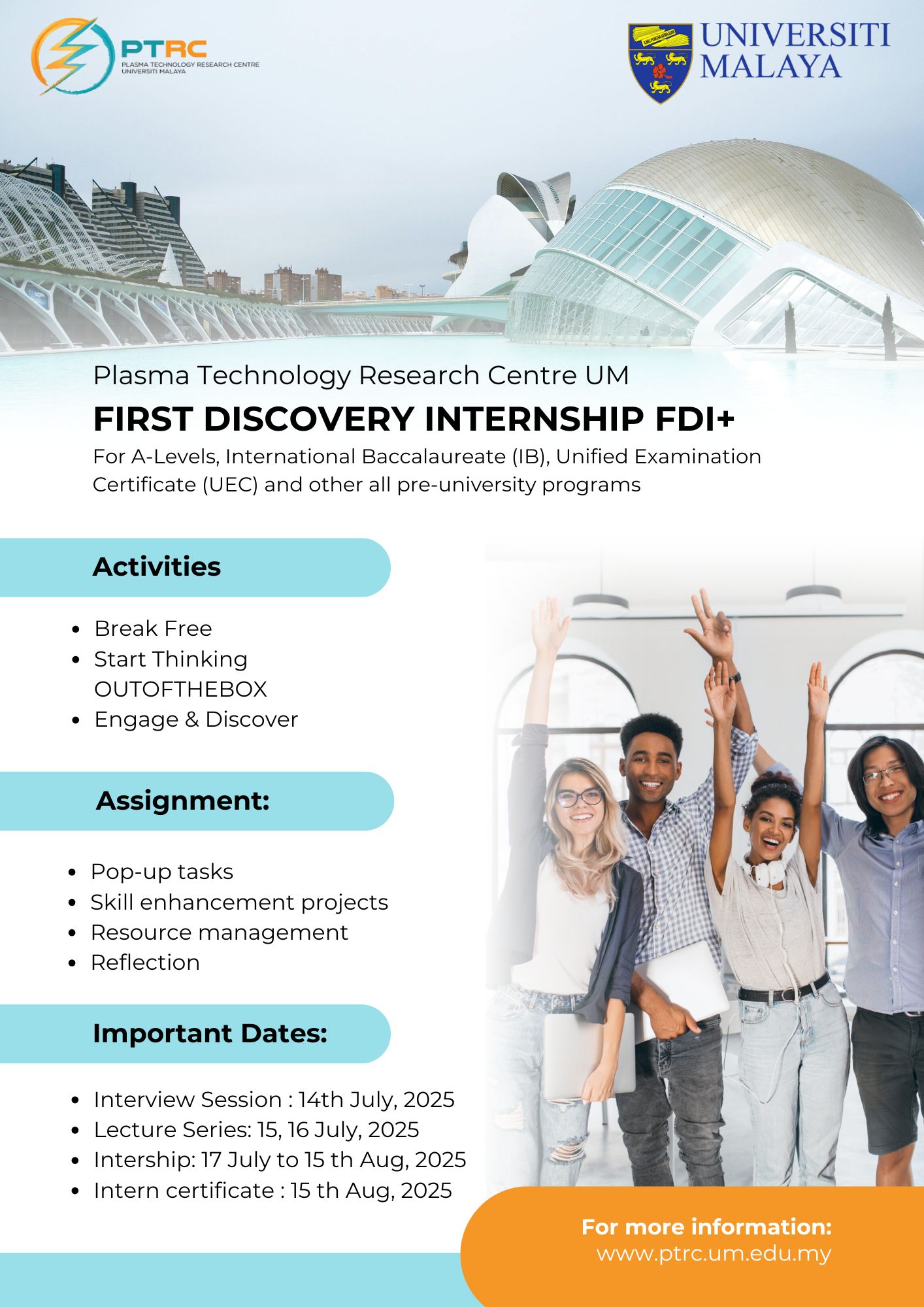 Venue: Plasma Technology Research Centre, Department of Physics, Faculty of Science, Universiti Malaya